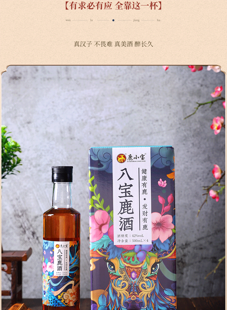 鹿小宝品牌----此产品为八宝鹿酒,即为电商爆款,小而强悍,送礼更大气,自饮送礼之上选.